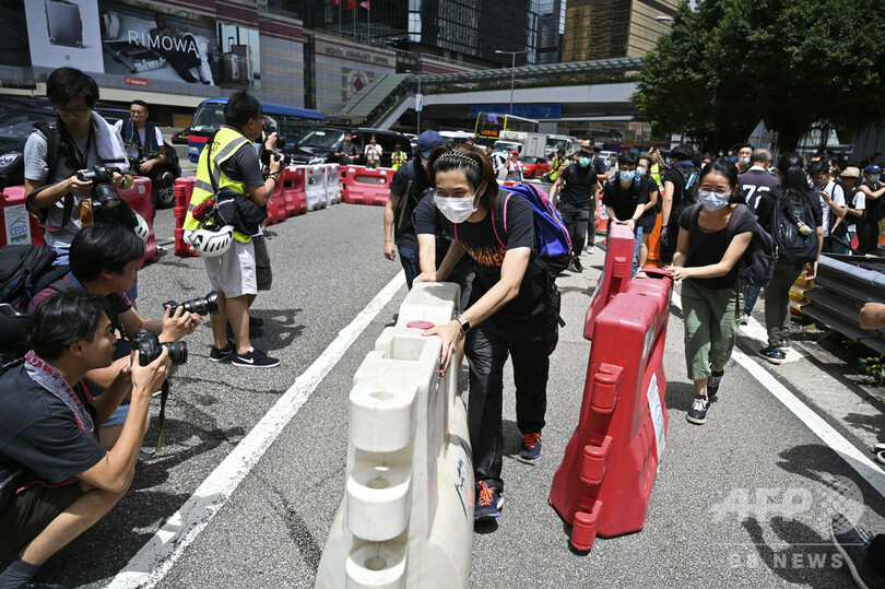 デモの呼び掛け人らは、一般車両や公共交通機関の徐行運転、市内各地での集会など、さまざまな抗議行動を展開するよう訴えている。(c)AFP/Elaine YU, Qasim NAUMAN
