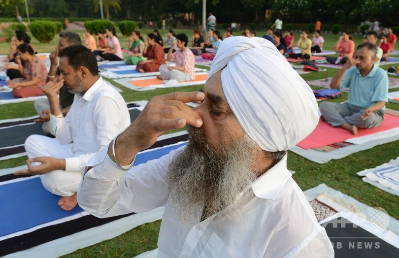 【6月21日 AFP】国連(UN)が定める「国際ヨガの日(International Yoga Day)」の21日、インド各地で集団ヨガが行われた。