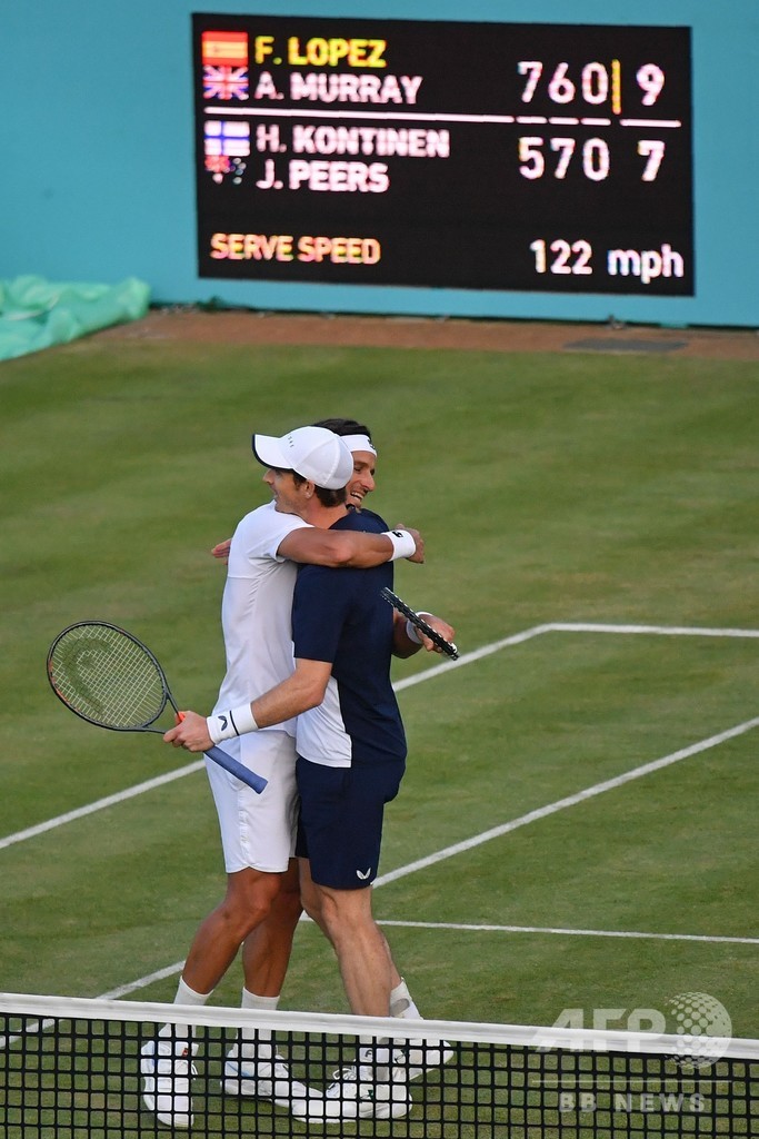 【6月23日 AFP】男子テニス、フィーバーツリー選手権(Fever-Tree Championships 2019)は22日、ダブルス準決勝が行われ、フェリシアーノ・ロペス(Feliciano Lopez、スペイン)/アンディ・マレー(Andy Murray、英国)組が7-5、6-7(5-7)、10-7で大会第3シードのジョン・ピアーズ(John Peers、オーストラリア)/ヘンリ・コンティネン(Henri Kontinen、フィンランド)組を下し、決勝進出を果たした。