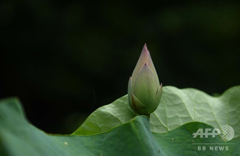 【6月24日 CNS】中国・浙江省(Zhejiang)杭州市(Hangzhou)西湖(West Lake)で、千年も昔の北宋時代のハスの実から、緑の葉と花のつぼみが元気に大きく育ち、市民と観光客の目を楽しませている。(c)CNS/JCM/AFPBB News
