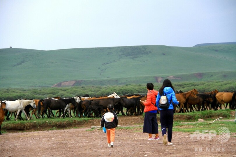 祁連山の草原に夏来る、モウコガゼルの群れも 甘粛・張掖