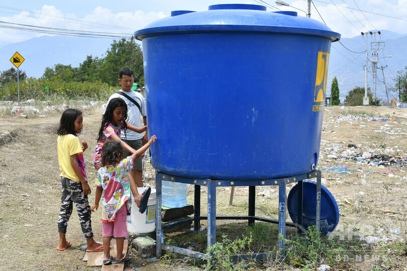 この写真はインドネシア地震のあと壊滅的なダメージのなか避難キャンプに作られたタンクです。この水はもちろん飲むことができ、生活にとても役に立ちます。災害の後でほとんど食べ物、飲み物が手に入りにくいなかこのタンクができ、こういうことから飢餓を少なくしていけると思い、この写真をえらびました。私たちの募金がこういうことにつながっていくと思うので、コンビニなど意外と身近にある募金というものを大切にしていきたいと思いました。(ペンネーム:H.S.)