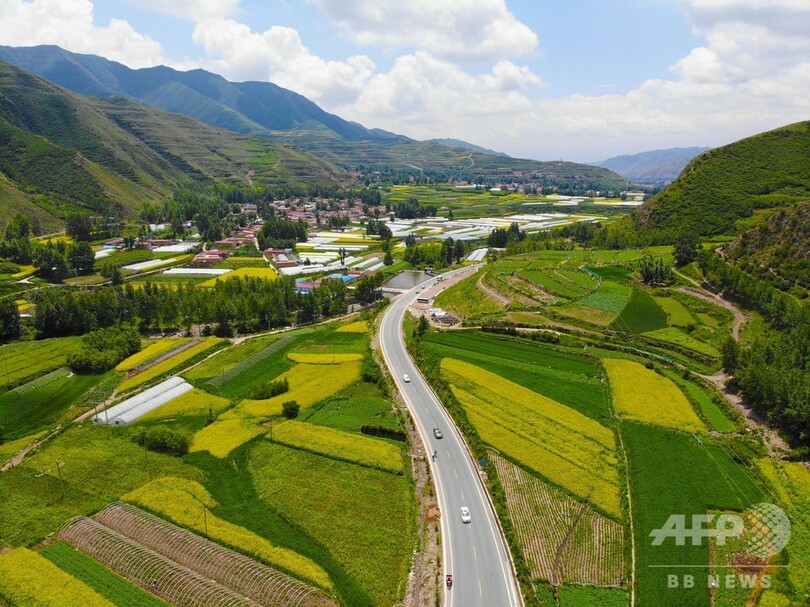 道路の沿線には、青海互助北山国家森林地質公園と楽都倉家峽(Cangjiaxia)省級森林公園がある。青々とした山々が連なり、清らかな水が流れ、風光明媚(めいび)な景色が広がっている。(c)CNS/JCM/AFPBB News