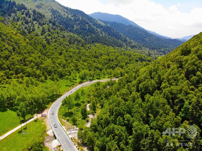 道路の沿線には、青海互助北山国家森林地質公園と楽都倉家峽(Cangjiaxia)省級森林公園がある。青々とした山々が連なり、清らかな水が流れ、風光明媚(めいび)な景色が広がっている。(c)CNS/JCM/AFPBB News