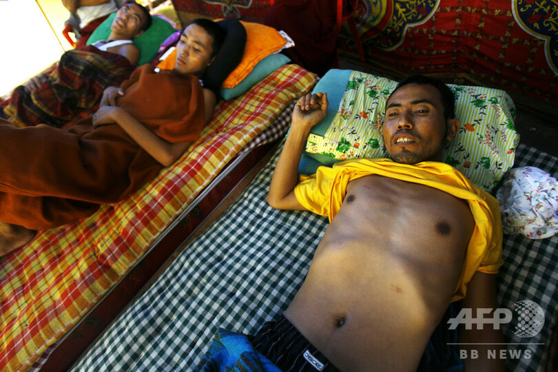貧困によって、十分な栄養・食事を取る事が出来ずにやせ細っている。ベッドに横たわってぐったりしている。貧困によって病院にも行けず不健康な状態で過ごしているように見えるから。目がうつろい状態。(ペンネーム:h.r.)