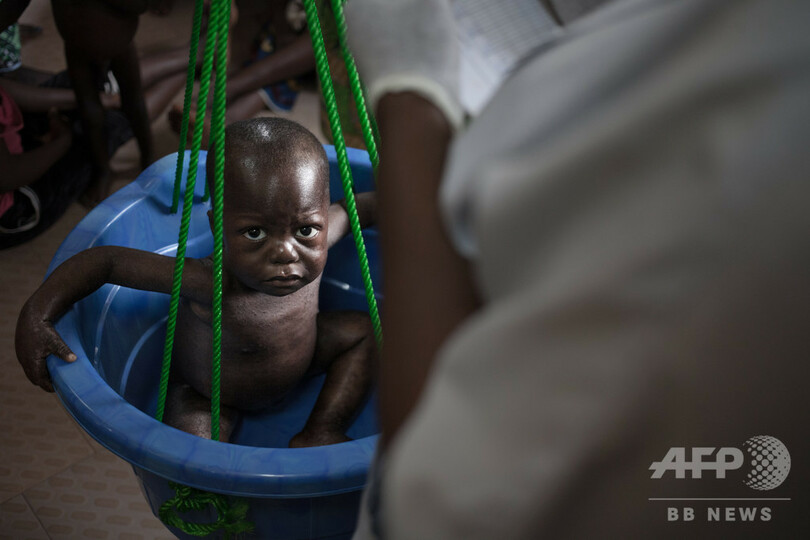 これは中央アフリカの首都バンギにある病院の小児科でバケツを使って行われている栄養不良の子どもの体重測定の様子を撮影した一枚です。内戦の続くこの国の新生児死亡率は世界で最も高く、新生児の24人に1人が生後28日以内に死亡しています。