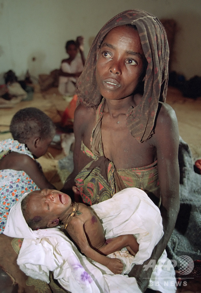 一体何km歩いただろうか。何日間食べ物を口にしていないだろうか。この母親は何を思い、今に至っているのだろうか。現在、彼女達はソマリアにいる。未だに内戦が続いているソマリアには飢餓状態の人々で溢れているのだ。この痩せ細った身体がその過酷さと生々しさを物語っている。この戦争と飢餓によって亡くなっていく人たちは後を絶たない。この母親の瞳が希望に満ち溢れ、子供が食べ物を頬張れるように世界全体で解決していかなければならないと私は思う。そして、世界からまた一つ尊い命が救われることを私は強く願っている。(ペンネーム:いくら)