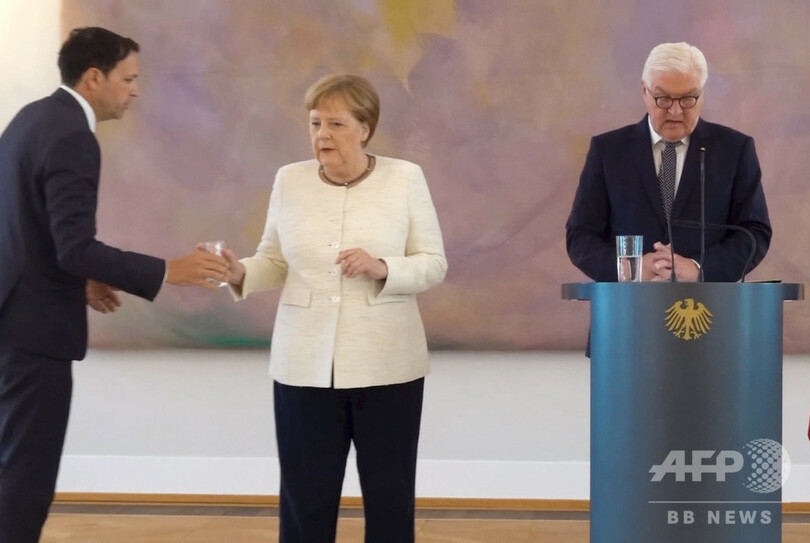 来月65歳になるメルケル氏は、新法相を正式に指名する式典で、演説を行ったフランクワルター・シュタインマイヤー(Frank-Walter Steinmeier)大統領の隣に立っていた際に、体を震わせ始めた。会場にいたDPA通信の写真記者によると、震えは約2分続いた。