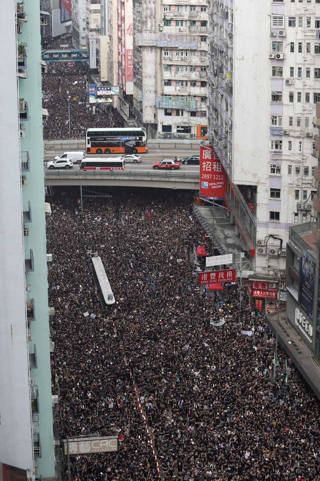 歴史に残るこの街の大きな転換期が目の前で始まっていた。街の支配権を徐々に中国に奪われていることに不満を募らせた住民らは、一昔前に直面した人権侵害が別の形で再び繰り返されることに抗議の声を上げたのだ。6月9日の平和的な抗議デモはうまく行かなかった。人々は政府に対する不満を募らせ再びデモを行ったものの警察に阻まれた。催涙ガスやゴム弾を浴びせられても住民が退却を拒否すると、市当局は少し譲歩した。だが「ノー」の嵐を鎮めることはできず、デモ参加者の数はさらに増えた。「私たちを黙らせることはできない」。横断幕にはそう書かれていた。