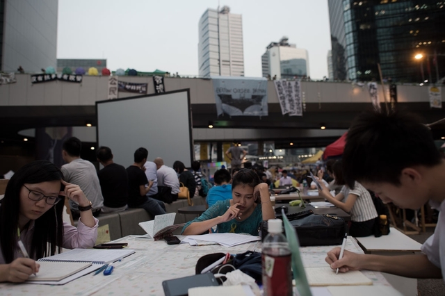 当時の抗議デモは、香港という街の雰囲気そのものだった。平和的で文明化されていて礼儀正しかった。数百人のボランティアによって救護ブースや携帯電話の充電スペースが設置され、飲料水や軽食が無料で配布された。またボランティアのグループが巡回してごみを拾い、親が抗議デモに参加している間、子どもたちが勉強しながら待てるよう道路に机まで設置された。