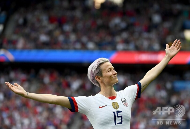 ピッチ外ではホワイトハウス(White House)への表敬訪問を拒否して、ドナルド・トランプ(Donald Trump)米大統領から痛烈な批判を受けているピンク色に髪を染めたラピノーは、ピッチ上では見事な活躍を見せており、決勝トーナメント初戦のスペイン戦での2得点に続いてゴールを決め、大会での得点数を5に伸ばした。