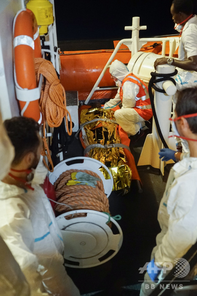 シーウオッチはツイッター(Twitter)への投稿で、「われわれが緊急事態を宣言してから60時間近くが経過したが、誰も耳を傾けないし、誰も責任を取らない。移民40人を安全な場所に移動させるのは再度、われわれ、カロラ・ラケッテ船長と船員たちの義務となった」と述べている。(c)AFP