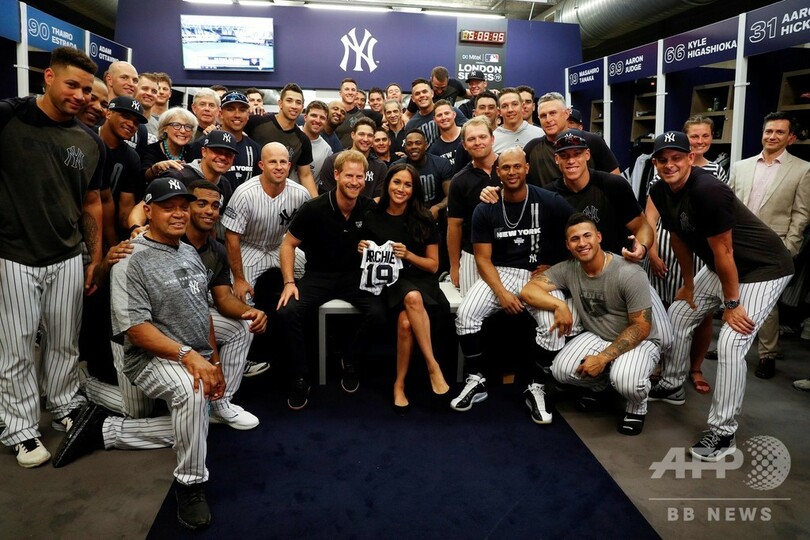 また、試合は英王室のヘンリー王子(Prince Harry)とメーガン妃(Meghan, Duchess of Sussex)も観戦に訪れ、MLBの英初上陸に高貴な趣を添えた。(c)AFP/Steven GRIFFITHS