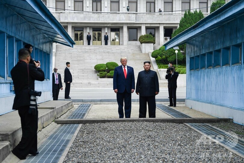 【6月30日 AFP】(更新・写真追加)訪韓中のドナルド・トランプ(Donald Trump)米大統領は30日、非武装地帯(DMZ)を訪れ、朝鮮半島(Korean Peninsula)を南北に隔てる軍事境界線上の板門店(Panmunjom)で北朝鮮の金正恩(キム・ジョンウン、Kim Jong-Un)朝鮮労働党委員長と面会した。