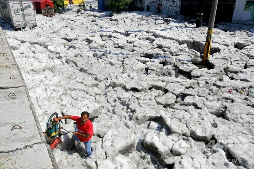 メキシコの大都市で大量のひょう 最高で2m、押し流された車も