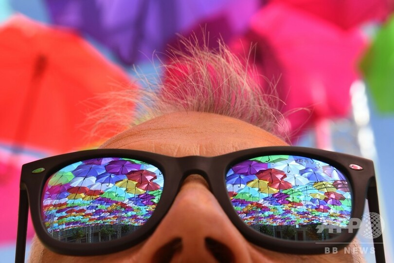 【7月1日 AFP】フランス南部エクサンプロバンス(Aix en Provence)に展示されているポルトガル人アーティスト、パトリシア・クーニャ(Patricia Cunha)さんが手掛けたインスタレーション「アンブレラスカイ・プロジェクト(Umbrella Sky Project)」。フランス観測史上初となる45度を超える気温が記録された先月28日には、傘の下で日差しを避ける人たちの姿が見られた。(c)AFP