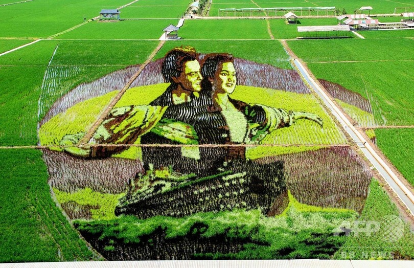 【7月2日 AFP】中国北東部の遼寧(Liaoning)省瀋陽(Shenyang)の水田に、異なる種類の稲を使って描かれたアート作品が出現した。