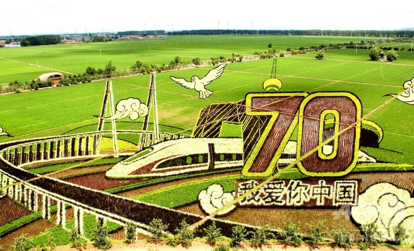 【7月2日 AFP】中国北東部の遼寧(Liaoning)省瀋陽(Shenyang)の水田に、異なる種類の稲を使って描かれたアート作品が出現した。