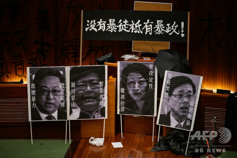 香港行政長官、デモ隊の「暴力行使」批判 議会突入で