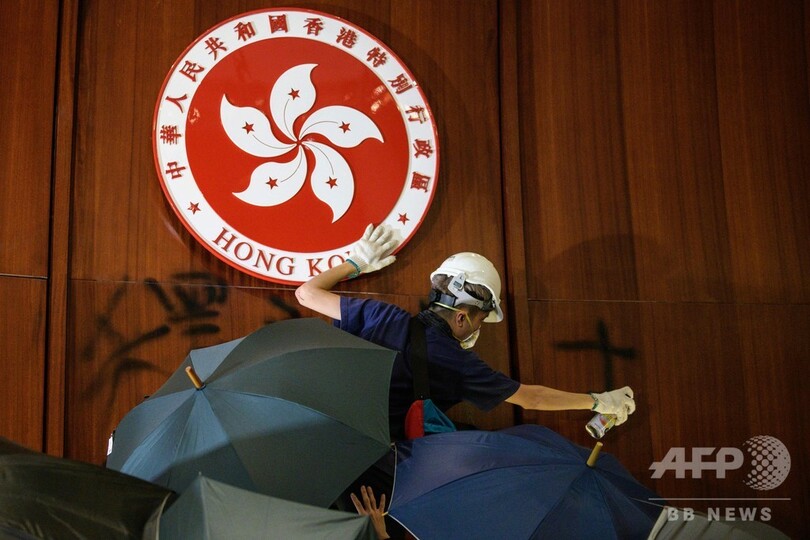 そうした中、英国による中国への香港返還から22年を迎えた1日には、民主派による大規模なデモが実施され、参加者らが林鄭長官の辞任を平和的に要求した。しかし同日夜になり、デモ隊の中でも若者が多い強硬派が怒りを爆発させ、立法会議事堂に突入。市章にスプレーで落書きをしたり、英統治時代の香港旗を掲げて「香港は中国ではない」と殴り書きしたりしたが、2日未明、警察当局によって強制排除された。