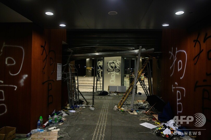 そうした中、英国による中国への香港返還から22年を迎えた1日には、民主派による大規模なデモが実施され、参加者らが林鄭長官の辞任を平和的に要求した。しかし同日夜になり、デモ隊の中でも若者が多い強硬派が怒りを爆発させ、立法会議事堂に突入。市章にスプレーで落書きをしたり、英統治時代の香港旗を掲げて「香港は中国ではない」と殴り書きしたりしたが、2日未明、警察当局によって強制排除された。