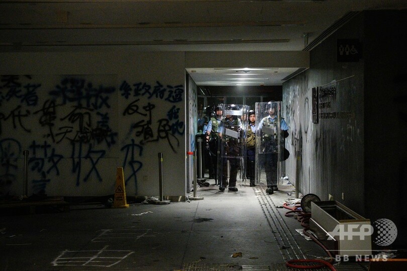 そうした中、英国による中国への香港返還から22年を迎えた1日には、民主派による大規模なデモが実施され、参加者らが林鄭長官の辞任を平和的に要求した。しかし同日夜になり、デモ隊の中でも若者が多い強硬派が怒りを爆発させ、立法会議事堂に突入。市章にスプレーで落書きをしたり、英統治時代の香港旗を掲げて「香港は中国ではない」と殴り書きしたりしたが、2日未明、警察当局によって強制排除された。