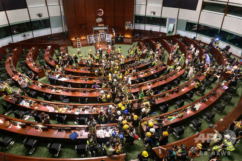 そうした中、英国による中国への香港返還から22年を迎えた1日には、民主派による大規模なデモが実施され、参加者らが林鄭長官の辞任を平和的に要求した。しかし同日夜になり、デモ隊の中でも若者が多い強硬派が怒りを爆発させ、立法会議事堂に突入。市章にスプレーで落書きをしたり、英統治時代の香港旗を掲げて「香港は中国ではない」と殴り書きしたりしたが、2日未明、警察当局によって強制排除された。