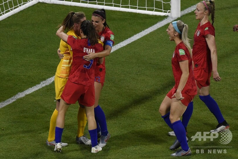 【7月3日 AFP】女子サッカーW杯フランス大会(FIFA Women's World Cup 2019)は2日、準決勝が行われ、米国はイングランドに2-1で勝利し、3大会連続の決勝進出を決めた。決勝点をマークしたアレックス・モーガン(Alex Morgan)は、終盤にPKを止めチームを救ったGKアリッサ・ネイハー(Alyssa Naeher)を称賛した。