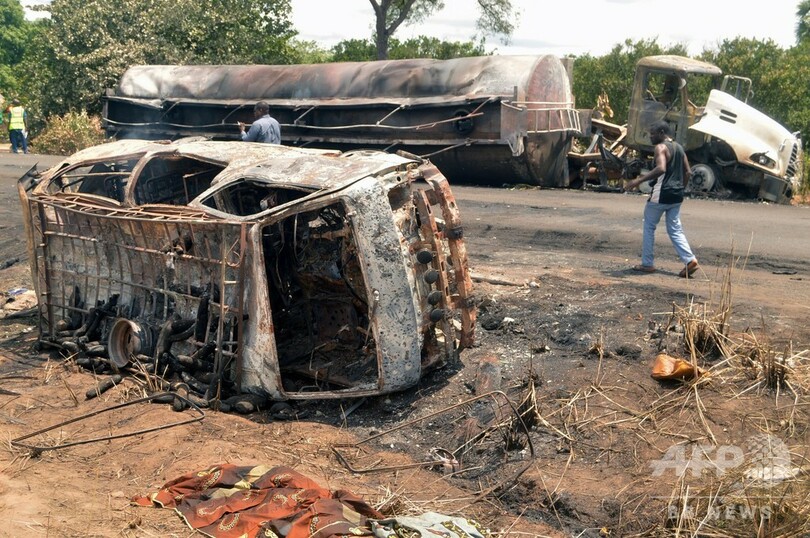 タンクローリーは1日、同州アフムベ村を通過していた際、商店のある付近で横転。地元住民が殺到し漏れだしたガソリンを1時間余り集めていたところ、燃料に引火した。当局によると、乗客を乗せたバスが現場を通過しようとした際、バスの排気管が地面をこすって火花が飛び散り引火したという。
