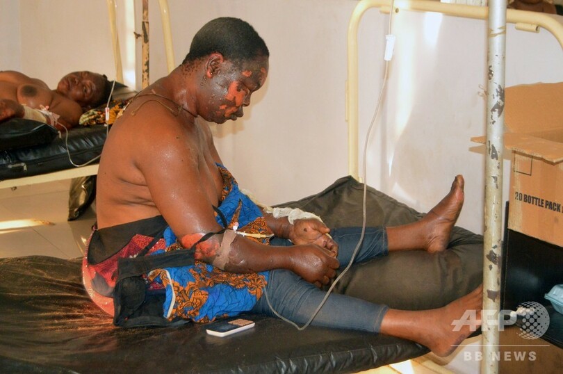 タンクローリーは1日、同州アフムベ村を通過していた際、商店のある付近で横転。地元住民が殺到し漏れだしたガソリンを1時間余り集めていたところ、燃料に引火した。当局によると、乗客を乗せたバスが現場を通過しようとした際、バスの排気管が地面をこすって火花が飛び散り引火したという。