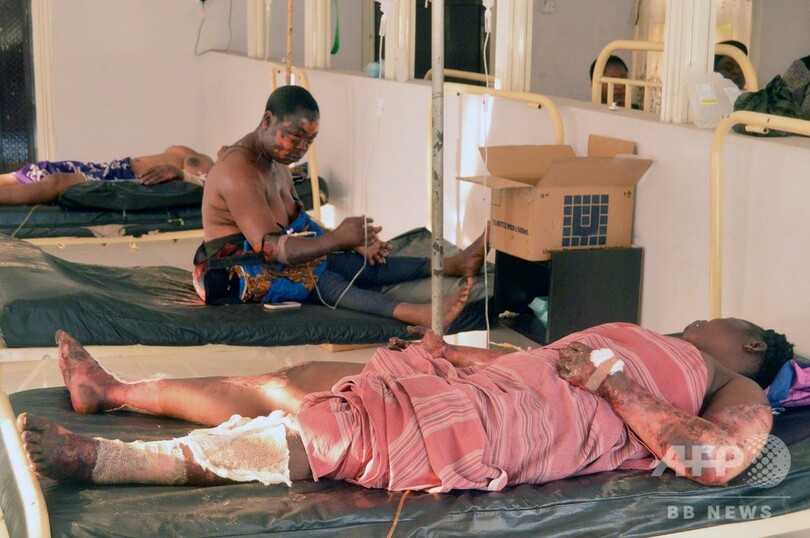 タンクローリーは1日、同州アフムベ村を通過していた際、商店のある付近で横転。地元住民が殺到し漏れだしたガソリンを1時間余り集めていたところ、燃料に引火した。当局によると、乗客を乗せたバスが現場を通過しようとした際、バスの排気管が地面をこすって火花が飛び散り引火したという。