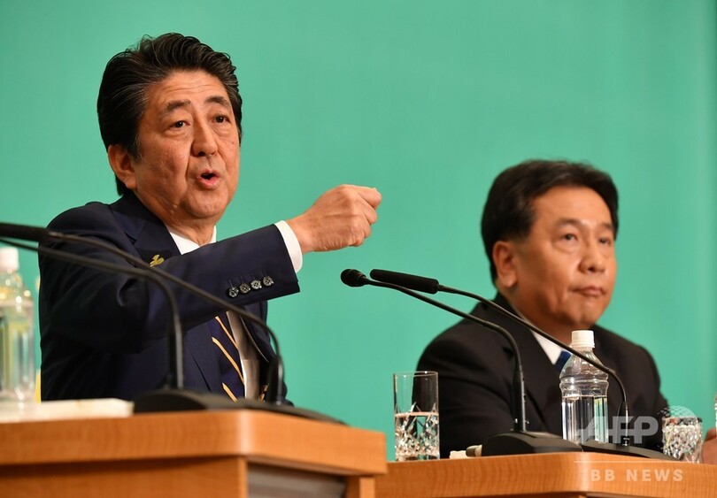 ニュース 政治・経済 主要7党、参院選に向け党首討論 日本記者クラブ 2019年7月3日 17:08 発信地:東京/東京 [ 日本 アジア・オセアニア ] このニュースをシェア ‹ › ❮ 2/7 ❯ 都内の日本記者クラブで行われた党首討論会に参加する自民党総裁の安倍晋三首相(左)と立憲民主党の枝野幸男代表(2019年7月3日撮影)。(c)Toshifumi KITAMURA / AFP 画像作成中 ! 【7月3日 AFP】都内の日本記者クラブで3日、参院選に向けて主要7党の代表による党首討論会が開かれた。(c)AFP 政治・経済 一覧へ> メディア・報道関係・法人の方向け 写真・動画 購入のお問合せ>