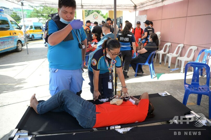 マニラのスポーツスタジアムで行われたイメルダ夫人の誕生祝いには友人や支持者ら約2500人が集まったが、嘔吐(おうと)する人が続出。救急車で病院に搬送された。