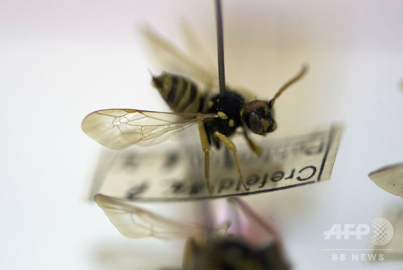 研究チームは、全体の40%を超える昆虫種が絶滅の危機にさらされており、毎年1%が新たに絶滅危惧種の仲間入りをすると推定。恐竜の絶滅以降で、「最大規模の絶滅事象」と指摘している。(c)AFP/Daphne ROUSSEAU