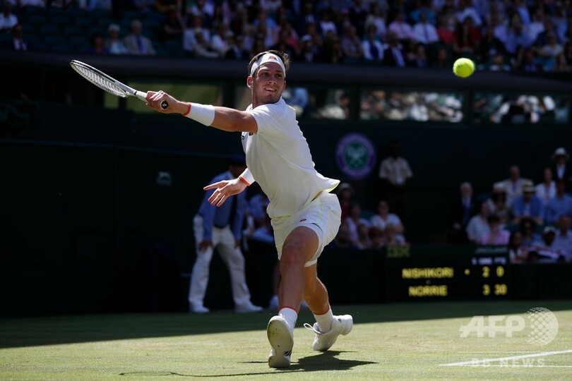 【7月5日 AFP】テニス、ウィンブルドン選手権(The Championships Wimbledon 2019)は4日、男子シングルス2回戦が行われ、大会第8シードの錦織圭(Kei Nishikori)は6-4、6-4、6-0のストレートでキャメロン・ノーリー(Cameron Norrie、英国) を下し、3回戦進出を決めた。(c)AFP