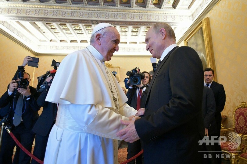プーチン氏はバチカン市国で、フランシスコ法王と1時間近く非公開で会談した。5日にはウクライナのギリシャ・カトリック教会指導者らが法王の元を訪れる予定で、今回の会談はそれに先立ち行われたもの。ウクライナ東部では、ロシア正教信者を中心とする親ロシア派分離独立勢力が、正教とギリシャ・カトリックの信者からなる勢力と戦っている。