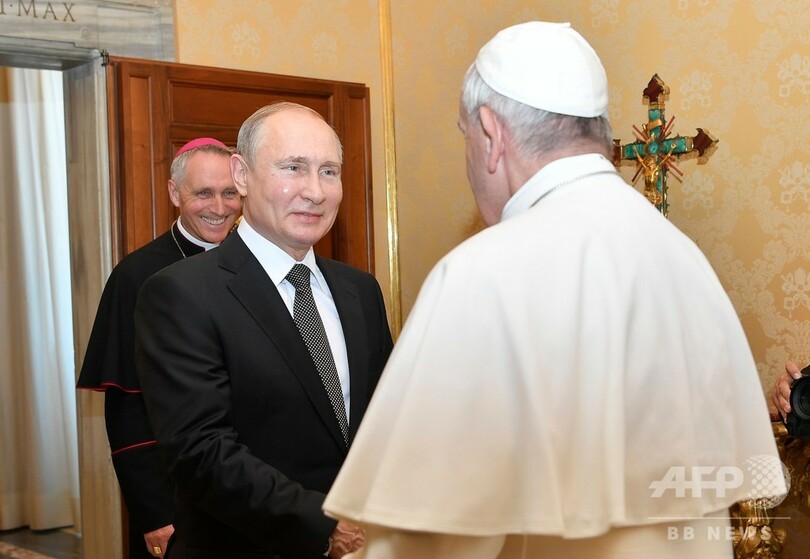 プーチン氏はバチカン市国で、フランシスコ法王と1時間近く非公開で会談した。5日にはウクライナのギリシャ・カトリック教会指導者らが法王の元を訪れる予定で、今回の会談はそれに先立ち行われたもの。ウクライナ東部では、ロシア正教信者を中心とする親ロシア派分離独立勢力が、正教とギリシャ・カトリックの信者からなる勢力と戦っている。