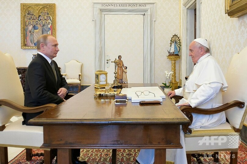 プーチン氏はバチカン市国で、フランシスコ法王と1時間近く非公開で会談した。5日にはウクライナのギリシャ・カトリック教会指導者らが法王の元を訪れる予定で、今回の会談はそれに先立ち行われたもの。ウクライナ東部では、ロシア正教信者を中心とする親ロシア派分離独立勢力が、正教とギリシャ・カトリックの信者からなる勢力と戦っている。