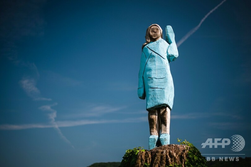 メラニア夫人、故郷スロベニアの町に彫像 「かかし」と酷評も