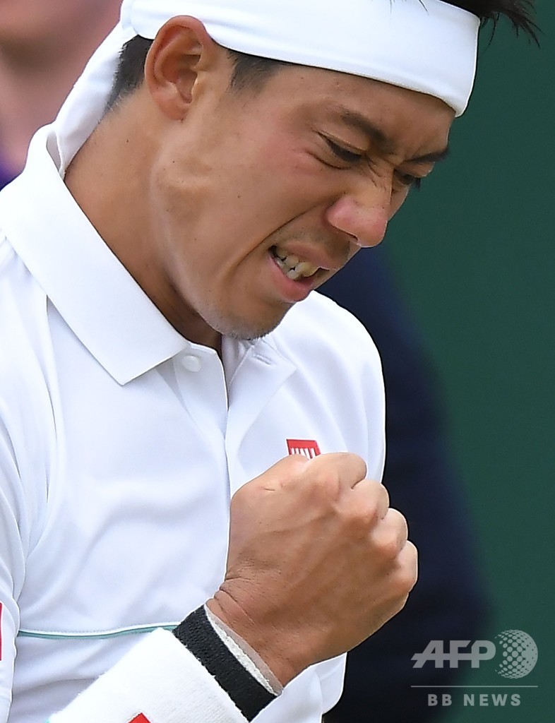 ウィンブルドンのシングルスで4度目の16強入りは、日本人としては女子の杉山愛(Ai Sugiyama)に並ぶ最多記録。これがキャリア通算400勝目となった29歳の錦織は次戦、カザフスタンのミハイル・ククシキン(Mikhail Kukushkin)と対戦する。(c)AFP