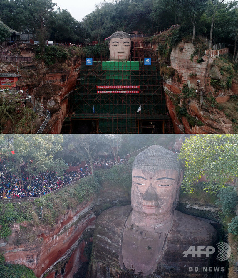 するとインターネットでは「楽山大仏が美白で、すべすべになった!」「イケメンのアイドルのようだ!」と話題になった。修復前後の写真も並べてアップされ、「歴史の深みや文化的味わいがなくなった」「これが修復というなら、恐ろしいことだ」といった書き込みも寄せられた。