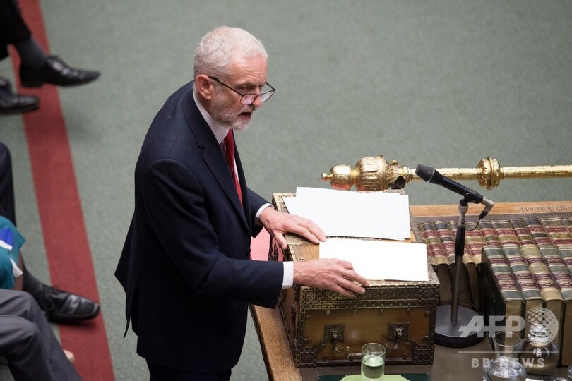労働党は、合意なき離脱や保守党が取り付けた協定案を拒否し、EU残留を支持する構え。ただ、労働党がEU離脱前に政権を握った場合の方針は、同党がEU側とどのような協定で合意できるかによって変わってくる。(c)AFP