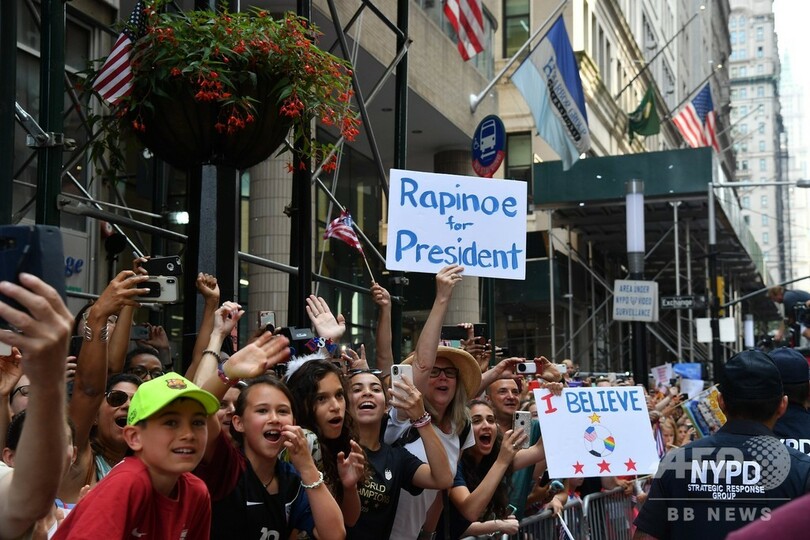 大会最優秀選手賞を獲得したミーガン・ラピノー(Megan Rapinoe)は、おなじみのゴールパフォーマンスを披露し、通称「キャニオン・オブ・ヒーローズ(Canyon of Heroes)」までのルートに列をなしたファンに優勝トロフィーを掲げた。