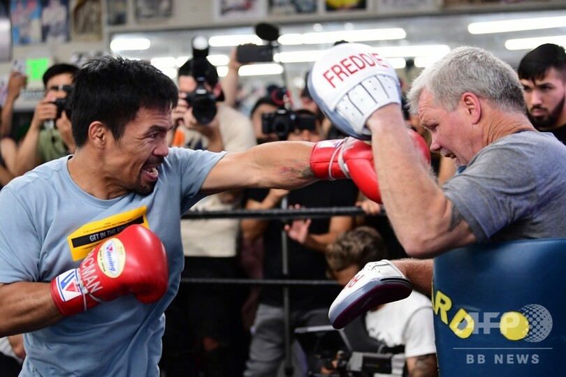 現在40歳のパッキャオは、20日に米ラスベガス(Las Vegas)のMGMグランド・ガーデン・アリーナ(MGM Grand Garden Arena)で無敗のサーマンと対戦する。(c)AFP/Rob Woollard
