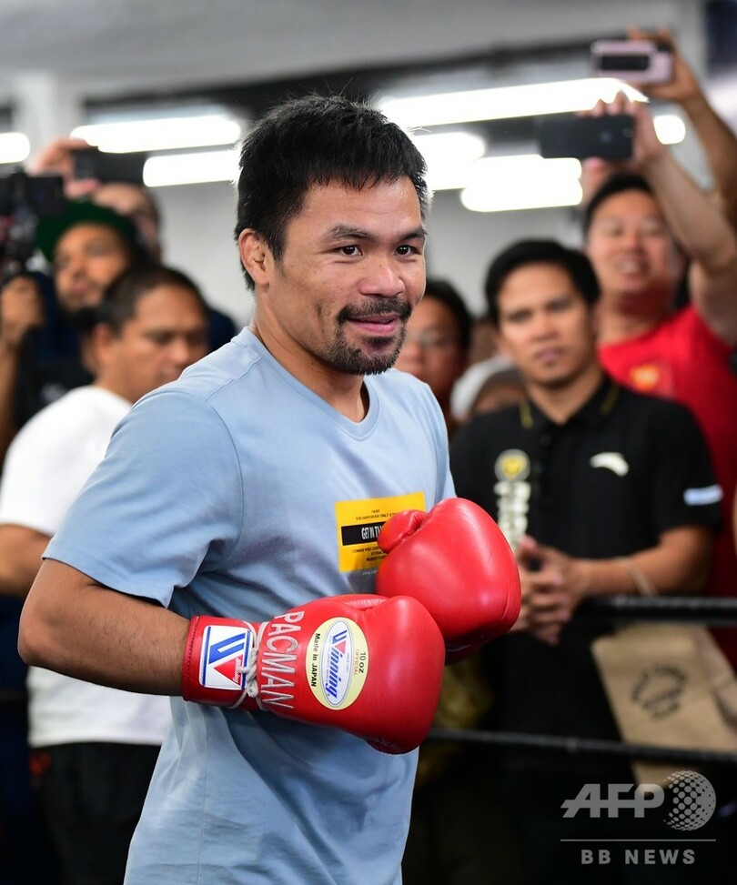 現在40歳のパッキャオは、20日に米ラスベガス(Las Vegas)のMGMグランド・ガーデン・アリーナ(MGM Grand Garden Arena)で無敗のサーマンと対戦する。(c)AFP/Rob Woollard