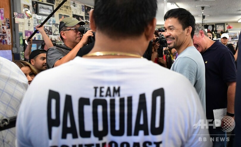 現在40歳のパッキャオは、20日に米ラスベガス(Las Vegas)のMGMグランド・ガーデン・アリーナ(MGM Grand Garden Arena)で無敗のサーマンと対戦する。(c)AFP/Rob Woollard