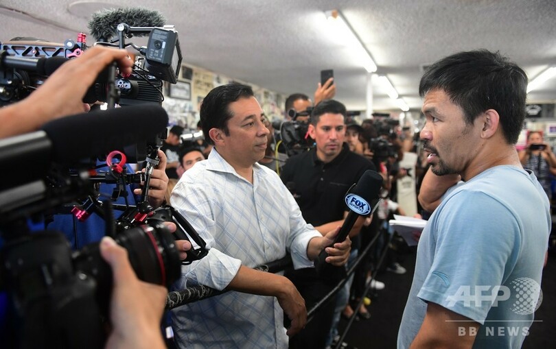 現在40歳のパッキャオは、20日に米ラスベガス(Las Vegas)のMGMグランド・ガーデン・アリーナ(MGM Grand Garden Arena)で無敗のサーマンと対戦する。(c)AFP/Rob Woollard