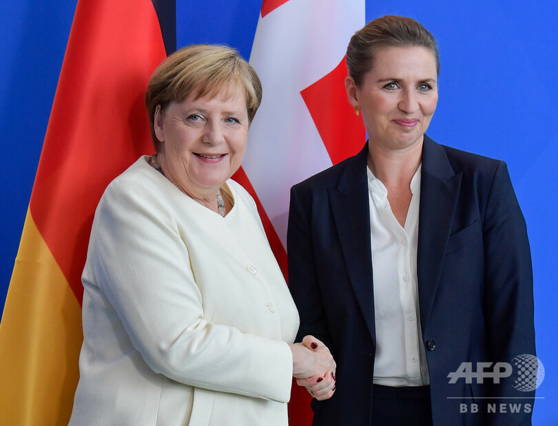 ここ1か月に公の場で3度にわたって体が震える症状を見せ、健康状態に対する懸念が浮上しているメルケル首相は、今回の式典では安全策をとった。メルケル首相は、首相府の入り口でデンマークのメッテ・フレデリクセン(Mette Frederiksen)新首相を迎えた後、笑顔を見せながら共に演台へと向かった。両首相が演台の上の椅子に着席した後、国歌が演奏された。