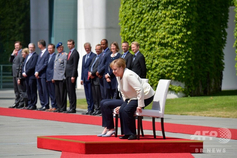 【7月12日 AFP】アンゲラ・メルケル(Angela Merkel)独首相は11日に行われた公式式典で、国歌演奏の際に着席する異例の措置を取った。体の震えが止まらない症状の再発を防いだものとみられるが、メルケル首相は自身の健康に気を付けていると説明している。