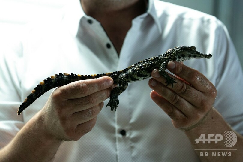 【7月12日 AFP】フランス北部バルドルイユ(Val-de-Reuil)にある動物園ビオトロピカ(Biotropica)で11日、先月生まれた絶滅危惧種のアフリカクチナガワニの赤ちゃん6匹が公開された。